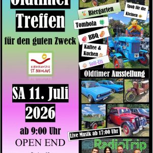 Anfang Juli veranstalteten Myriam und Andreas Bröll zum 5. Mal ein Oldtimertreffen zugunsten des Kinderhospiz St. Nikolaus in Bad Grönenbach und konnten 2025 mit ihrer Aktion stolze 8.500 Euro an Spenden sammeln.