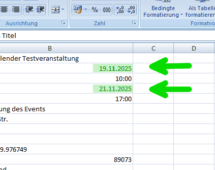 • Du musst nicht jede Veranstaltung einzeln importieren.