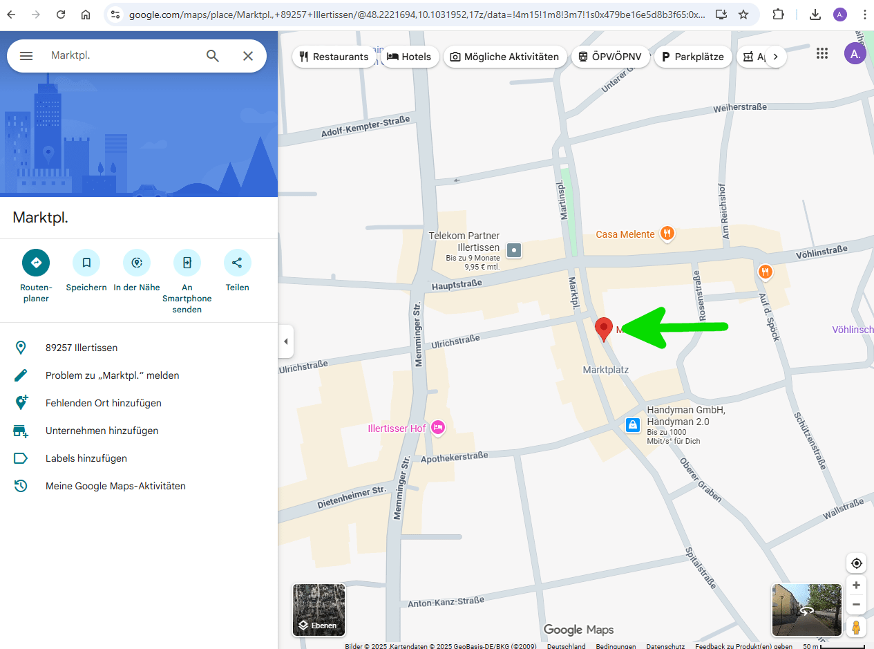 • Klicke auf den Button und öffne die Google Maps Karte.